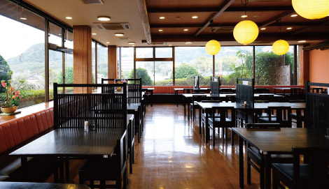 川棚本館横に隣接する南本館は、ゆったりとしたテーブル席でお食事いただける店舗です。 二階には80名様収容の大広間を完備しておりますので、団体様のご利用も可能です。